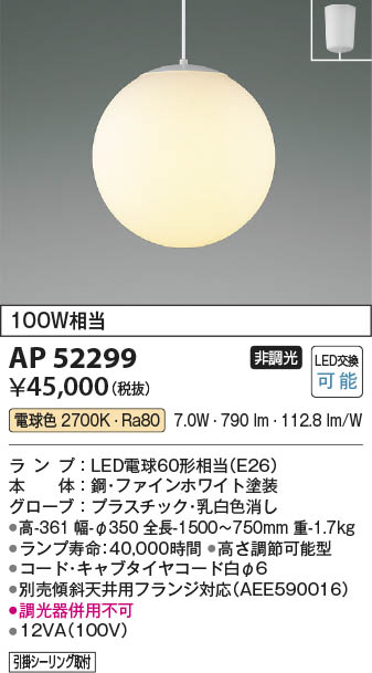 Koizumi コイズミ照明 LEDペンダント AP52299