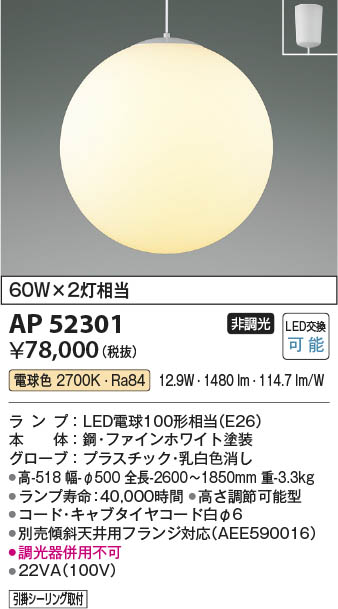 Koizumi コイズミ照明 LEDペンダント AP52301