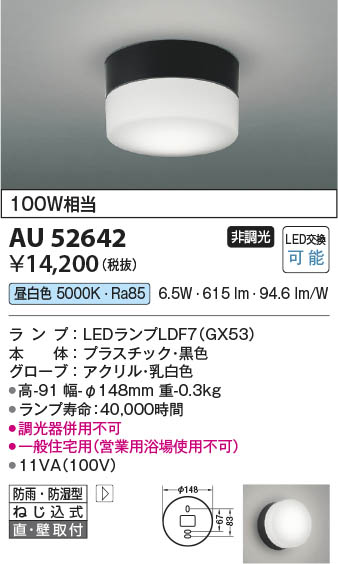Koizumi コイズミ照明 LED防雨防湿型ブラケット AU52642