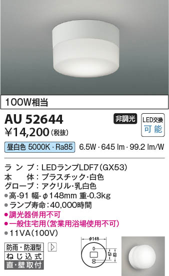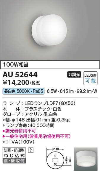 Koizumi コイズミ照明 LED防雨防湿型ブラケット AU52644