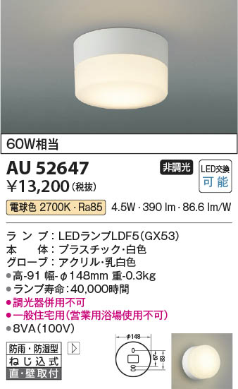 Koizumi コイズミ照明 LED防雨防湿型ブラケット AU52647
