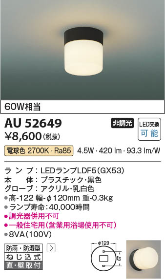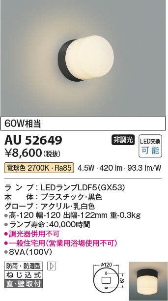 Koizumi コイズミ照明 LED防雨防湿型ブラケット AU52649