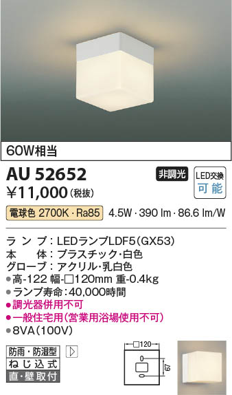 Koizumi コイズミ照明 LED防雨防湿型ブラケット AU52652