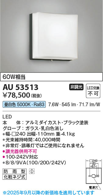 Koizumi コイズミ照明 LED防雨型ブラケット AU53513