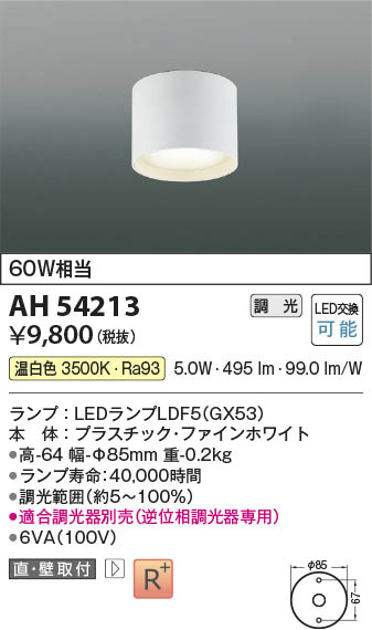 Koizumi コイズミ照明 LED小型シーリング AH54213 | 商品情報 | LED照明器具・照明機器の激安通信販売・格安通販・業務用販売・見積もり販売 照明倉庫 -LIGHTING DEPOT-