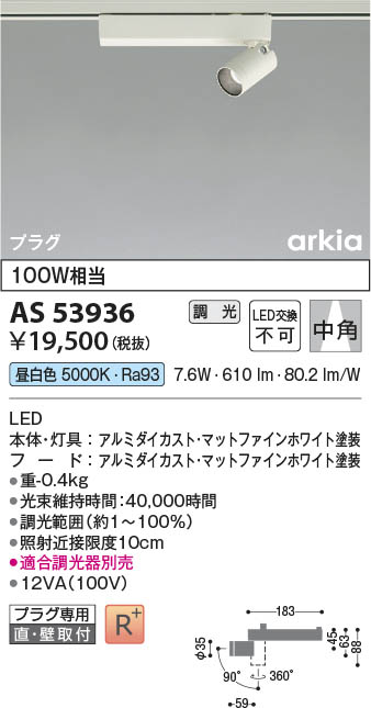 Koizumi コイズミ照明 LEDスポットライト AS53936