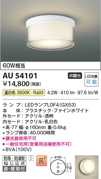 Koizumi コイズミ照明 LED防雨防湿型シーリング AU54101