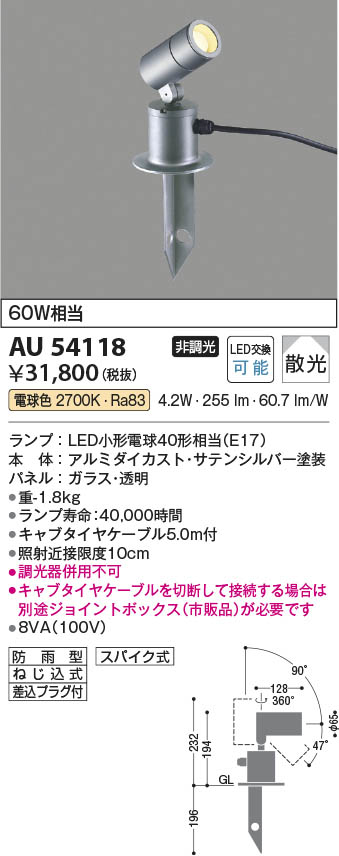 Koizumi コイズミ照明 LEDエクステリアスパイクスポット AU54118