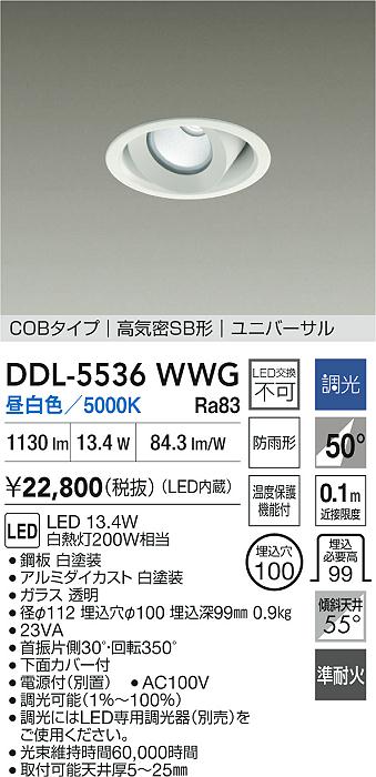 DAIKO 大光電機 ユニバーサルダウンライト(軒下兼用) DDL-5536WWG