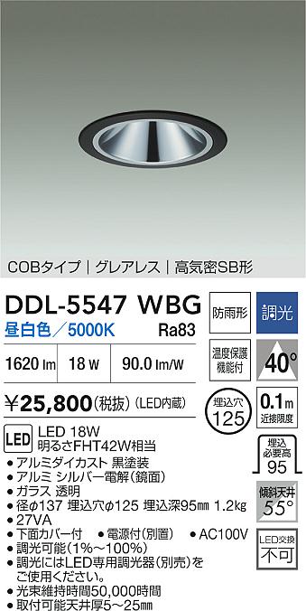 DAIKO 大光電機 ダウンライト(軒下兼用) DDL-5547WBG