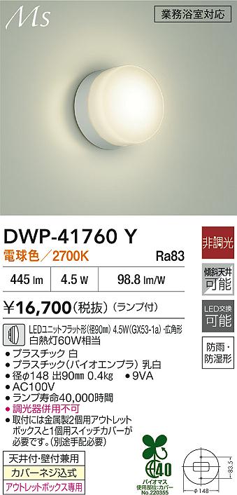 DAIKO 大光電機 浴室灯 DWP-41760Y