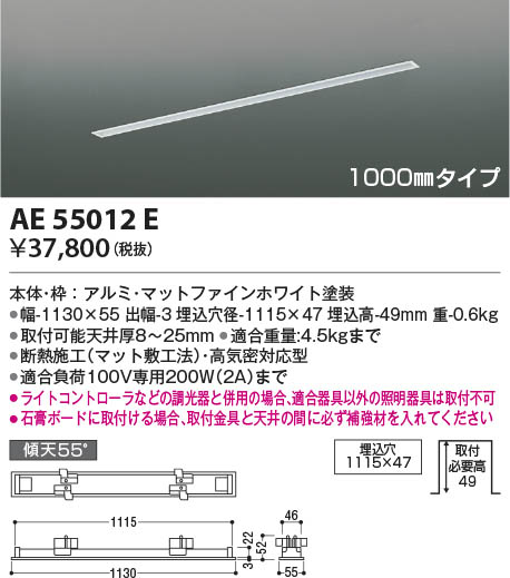 ●幅-1130×55 出幅-3 埋込穴径-1115×47 埋込高-49mm 重-0.6kg