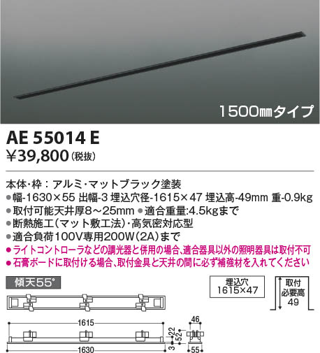 ●幅-1630×55 出幅-3 埋込穴径-1615×47 埋込高-49mm 重-0.9kg