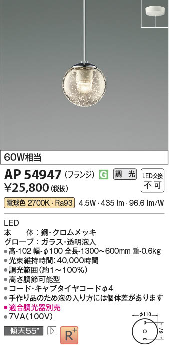Koizumi コイズミ照明 LEDペンダント AP54947