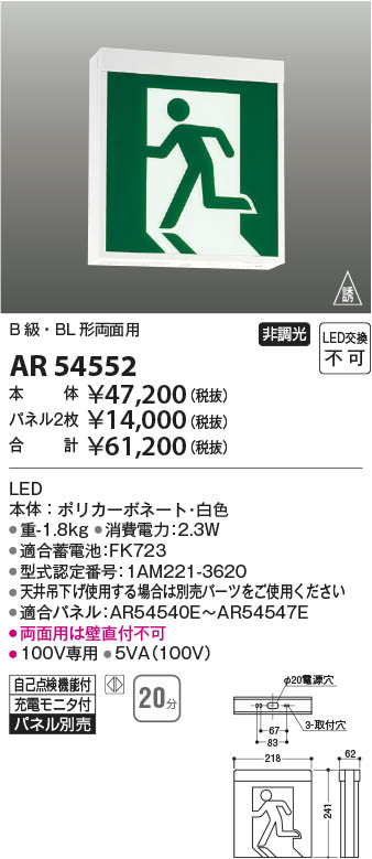 Koizumi コイズミ照明 LED誘導灯 AR54552
