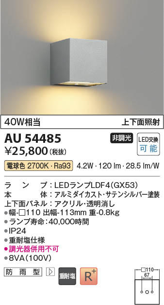 Koizumi コイズミ照明 LED防雨型ブラケット AU54485
