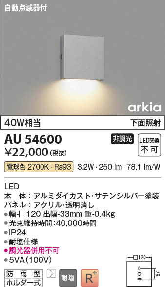 Koizumi コイズミ照明 LED防雨型ブラケット AU54600