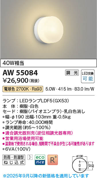 Koizumi コイズミ照明 LED防雨防湿型ブラケット AW55084