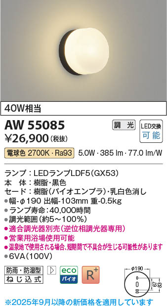 Koizumi コイズミ照明 LED防雨防湿型ブラケット AW55085