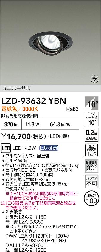 DAIKO 大光電機 LED ユニバーサルダウンライト LZD-93632YBN