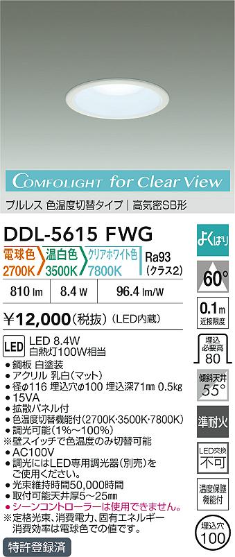 DAIKO 大光電機 色温度切替ダウンライト DDL-5615FWG