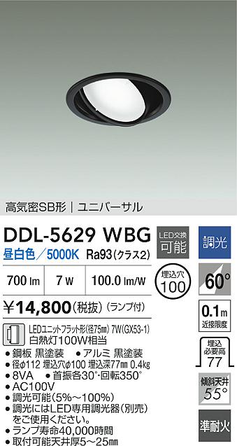 DAIKO 大光電機 ユニバーサルダウンライト DDL-5629WBG