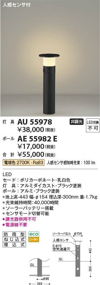 Koizumi コイズミ照明 ポール AE55982E | 商品情報 | LED照明器具・照明機器の激安通信販売・格安通販・業務用販売・見積もり販売 照明倉庫 -LIGHTING DEPOT-