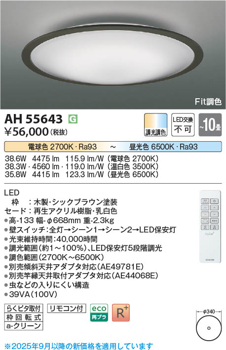 Koizumi コイズミ照明 LEDシーリング AH55643
