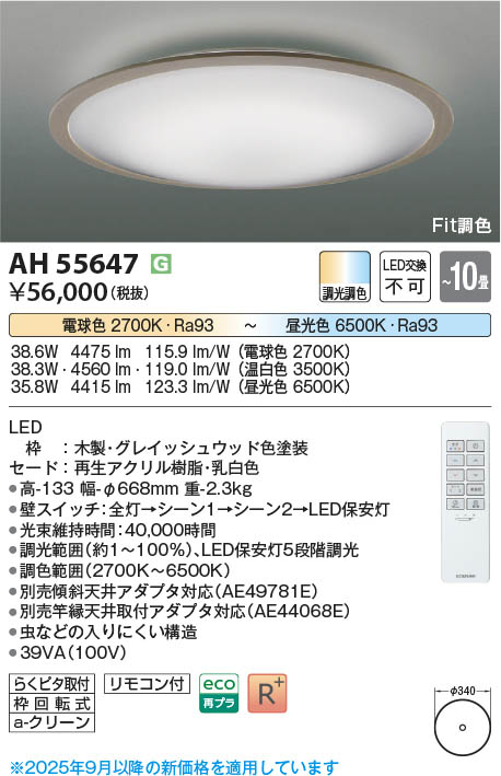 Koizumi コイズミ照明 LEDシーリング AH55647