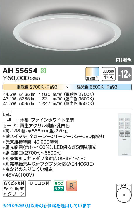 Koizumi コイズミ照明 LEDシーリング AH55654