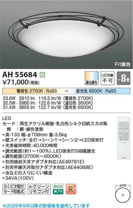 Koizumi コイズミ照明 LEDシーリング AH55684