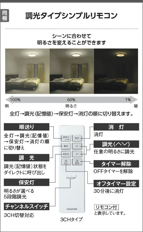 ●調光範囲(約1〜100%)、LED保安灯5段階調光