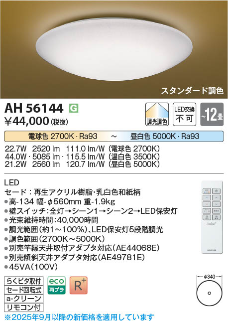 Koizumi コイズミ照明 LED和風シーリング AH56144