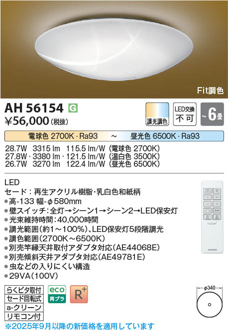 Koizumi コイズミ照明 LED和風シーリング AH56154