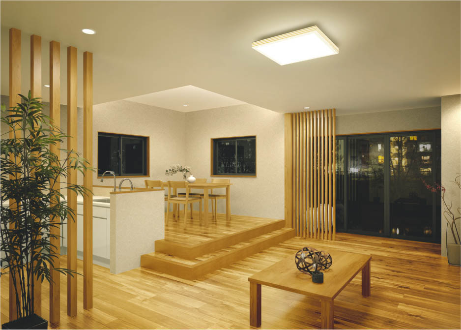 ●壁スイッチ:全灯→シーン1→シーン2→LED保安灯