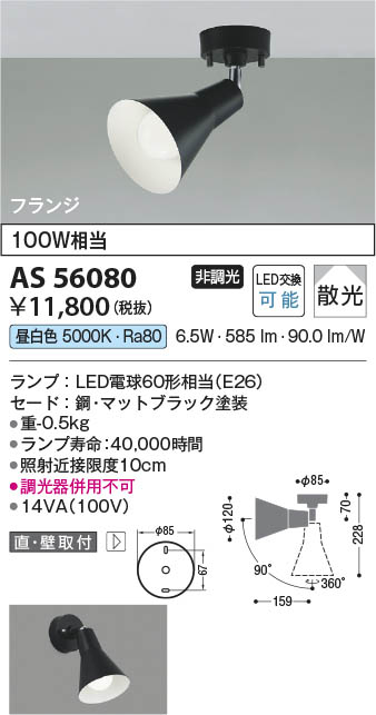 Koizumi コイズミ照明 LEDスポットライト AS56080