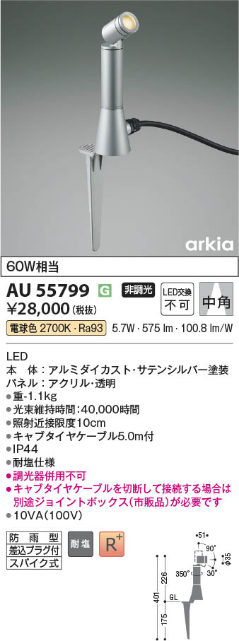 Koizumi コイズミ照明 LEDエクステリアスパイクスポット AU55799
