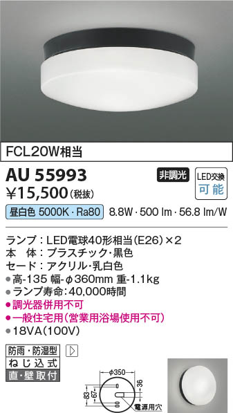 Koizumi コイズミ照明 LED防雨防湿型シーリング AU55993