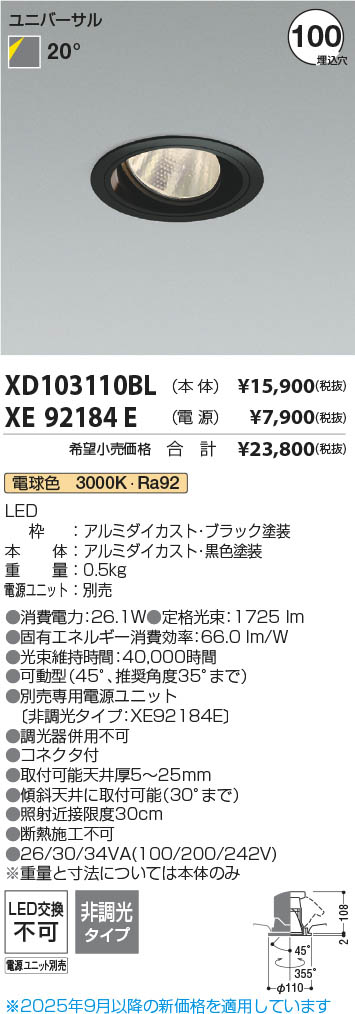 Koizumi コイズミ照明 LEDユニバーサルダウンライト 本体 XD103110BL | 商品情報 | LED照明器具・照明機器の激安通信販売・格安通販・業務用販売・見積もり販売 照明倉庫 -LIGHTING DEPOT-