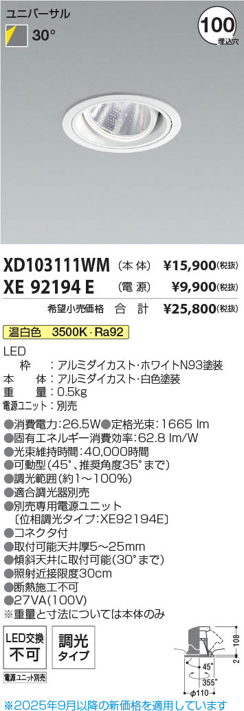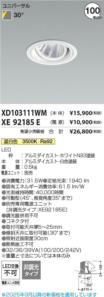 Koizumi コイズミ照明 LEDユニバーサルダウンライト 本体 XD103111WM | 商品情報 | LED照明器具・照明機器の激安通信販売・格安通販・業務用販売・見積もり販売 照明倉庫 -LIGHTING DEPOT-