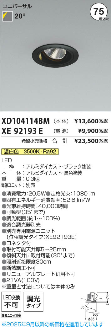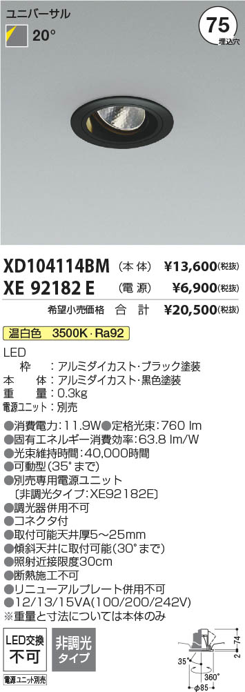 Koizumi コイズミ照明 LEDユニバーサルダウンライト 本体 XD104114BM | 商品情報 | LED照明器具・照明機器の激安通信販売・格安通販・業務用販売・見積もり販売 照明倉庫 -LIGHTING DEPOT-