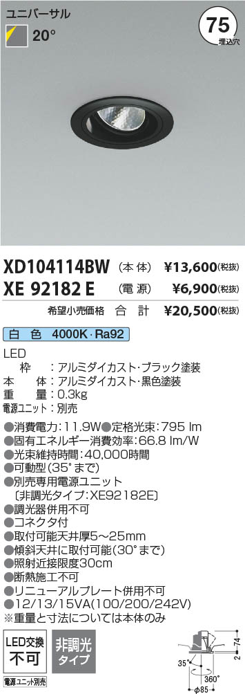 Koizumi コイズミ照明 LEDユニバーサルダウンライト 本体 XD104114BW | 商品情報 | LED照明器具・照明機器の激安通信販売・格安通販・業務用販売・見積もり販売 照明倉庫 -LIGHTING DEPOT-