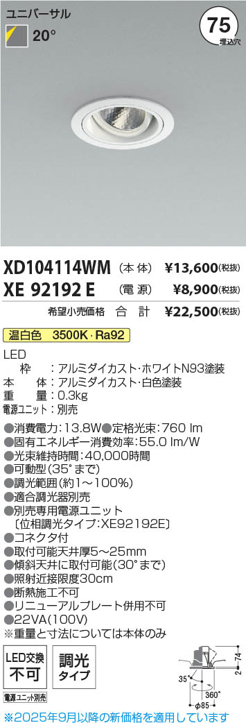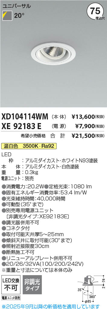 Koizumi コイズミ照明 LEDユニバーサルダウンライト 本体 XD104114WM