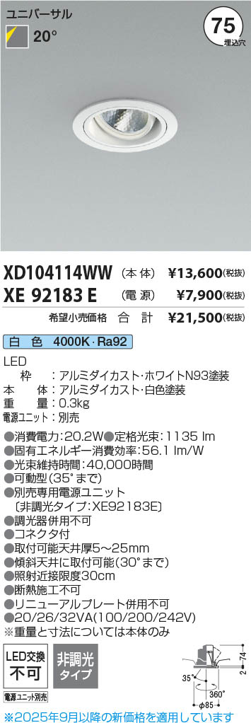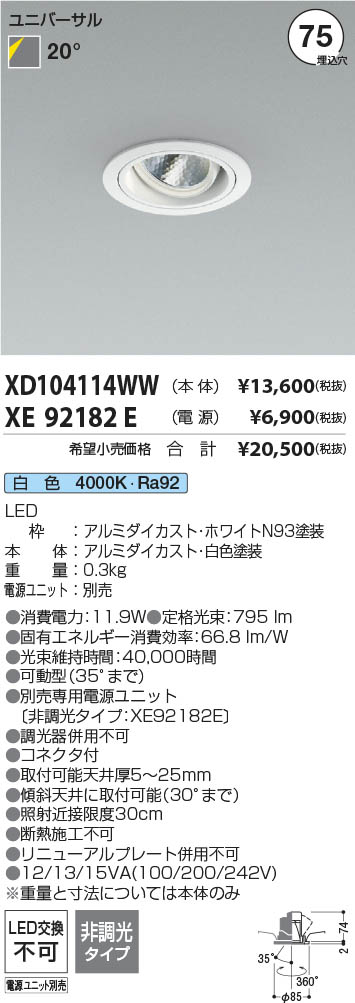 Koizumi コイズミ照明 LEDユニバーサルダウンライト 本体 XD104114WW | 商品情報 | LED照明器具・照明機器の激安通信販売・格安通販・業務用販売・見積もり販売 照明倉庫 -LIGHTING DEPOT-