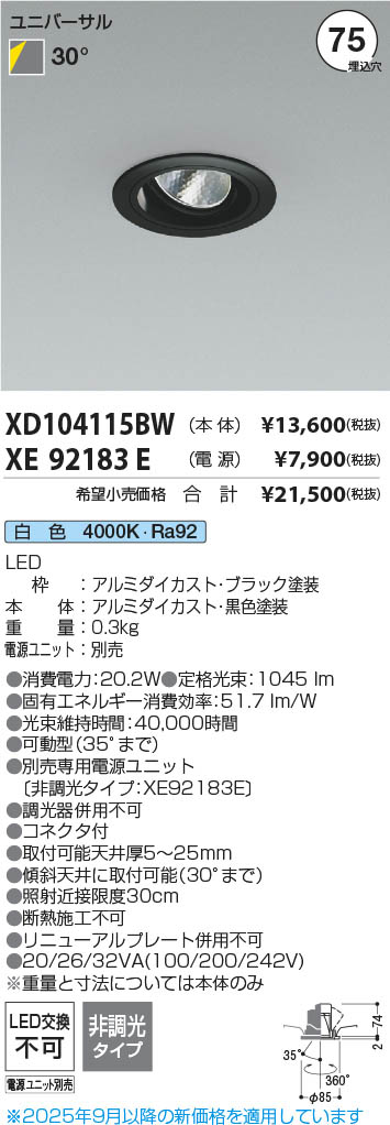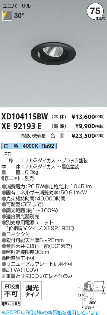 Koizumi コイズミ照明 LEDユニバーサルダウンライト 本体 XD104115BW | 商品情報 | LED照明器具・照明機器の激安通信販売・格安通販・業務用販売・見積もり販売 照明倉庫 -LIGHTING DEPOT-