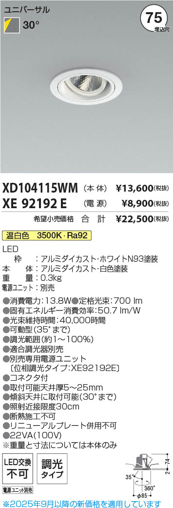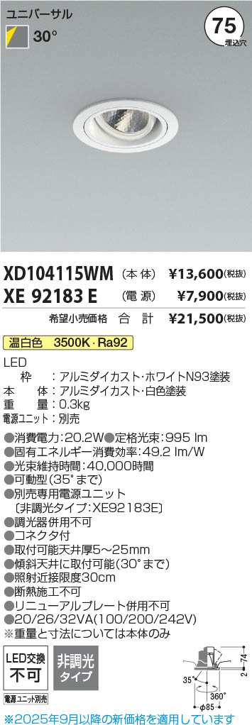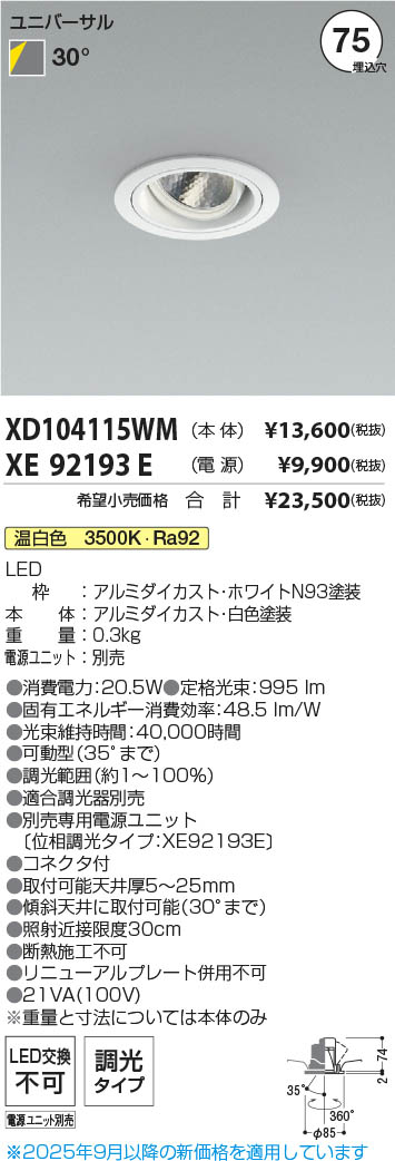 Koizumi コイズミ照明 LEDユニバーサルダウンライト 本体 XD104115WM