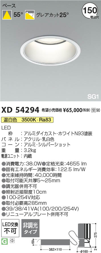 Koizumi コイズミ照明 LED SG1ダウンライト XD54294