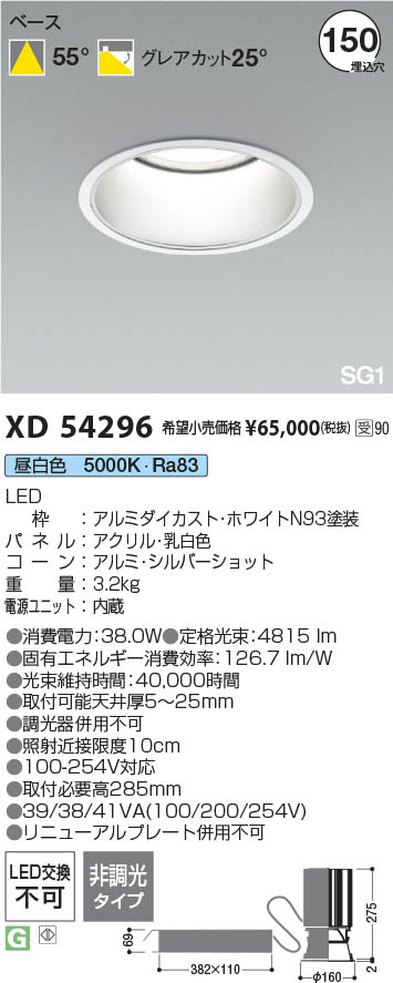 Koizumi コイズミ照明 LED SG1ダウンライト XD54296