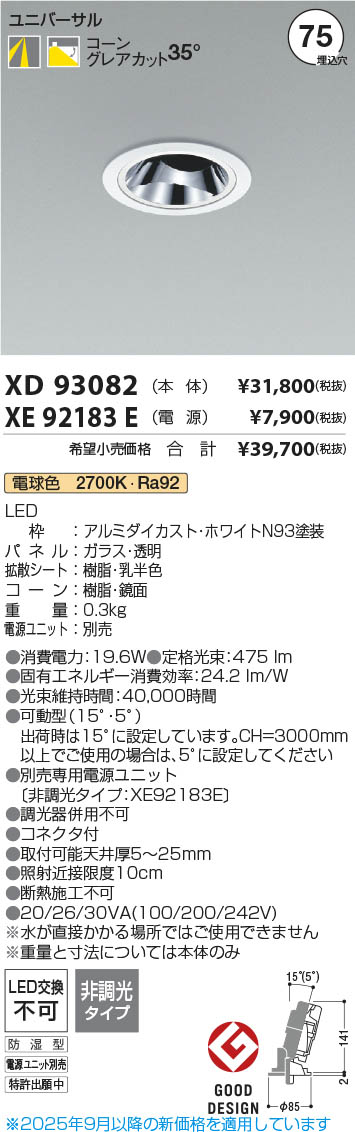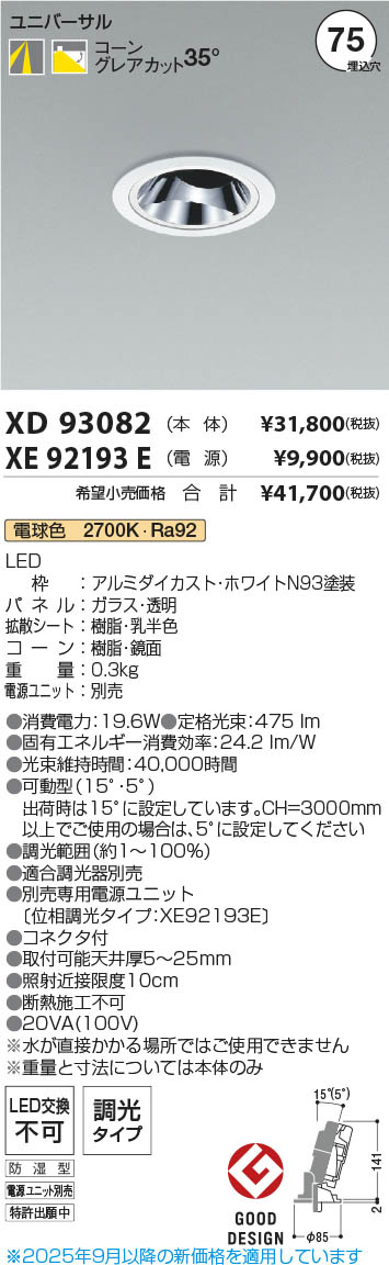 Koizumi コイズミ照明 LEDユニバーサルダウンライト 本体 XD93082