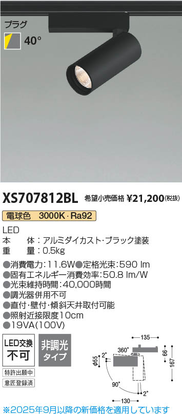 Koizumi コイズミ照明 LEDスポットライト XS707812BL